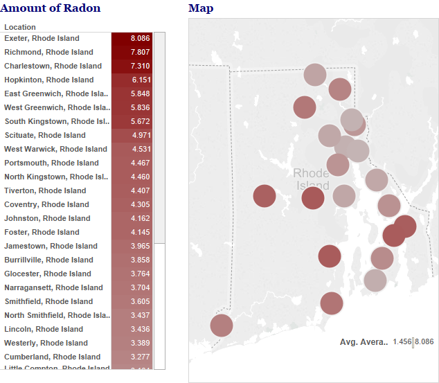 Rhode Island’s radon database (2011) indicates that one in four homes in Rhode Island contain radon at or above the Environmental Protection Agency action level of 4.0 pC/L, which is higher than the national average of one in fifteen homes. The program’s database is used in an on-line mapping display available at http://www.health.ri.gov/data/radon/